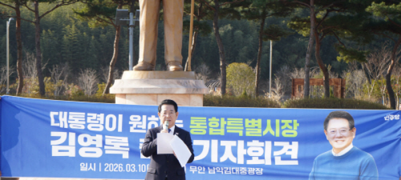 선거김영록 예비후보, 전남광주통합특별시장 출마 선언더불어민주당 김영록 전남광주통합특별시장 예비후보가 10일 무안 김대중광장, 광주시의회, 순천대 열린광장에서 잇따라 기자회견을 열고 초대 통합특별시장 선거 출마를 공식 선언했다. 김 예비후보는 이날 “전남광주가 대통합을 계기로 소외의 역사를 끊어내고 수도권 일극체제를 뛰어넘는 대한민국 미래 성장거점으로 도약할 역사적 전환기를 맞았다”며 “민주화의 성지 광주전남을 대한민국 경제를 이끄는 ‘경제 민주화의 성지’로 탈바꿈시키겠다”고 밝혔다. 이어 “이재명 대통령의 적극적인 뒷받침으로 가능했던 광주전남 통합은 뛰어난 지도자 한 사람이 역사의 흐름을 바꿀 수 있다는 ...