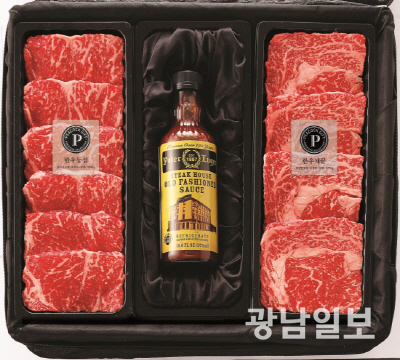 흑한우를 숙성시킨 ‘피코크 ?에이징 제주흑한우1호(29만8000원·150세트 한정)와 뉴욕 3대 스테이크 레스토랑 중 하나로 꼽히는 ‘피터루거’의 스테이크 소스를 담은 콜라보 세트도 선보인다.