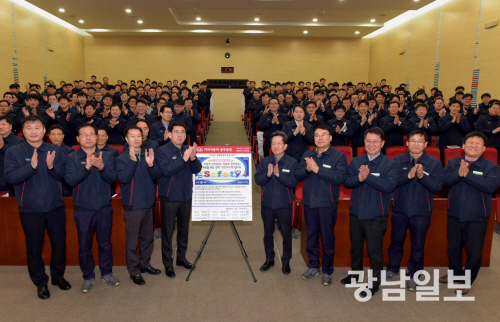 이날 결의대회에는 정찬민 기아차 광주공장장을 비롯한 임원, 부서장 등 관리감독자 300명이 참석해 근로자의 안전을 최우선 과제로 선정하고 2018년 무재해 안전사업장 구현과 재해목표 달성을 다짐했다.