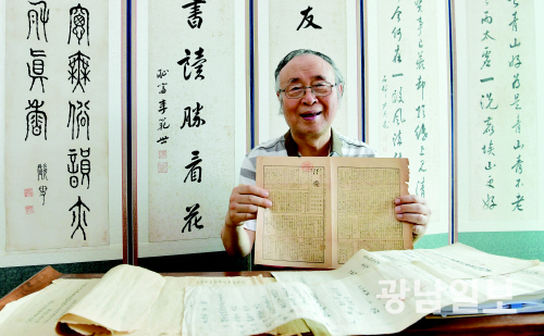 | 민족문제연구소 지도위원이자 친일인명사전 편찬위원인 심정섭씨(77)는 일제 및 천황에 대한 조선인의 절대적 복종을 강요하는 글이 담긴 친일단체 수양단 광주지부의 ‘단보 9호’를 본보에 독점 공개했다. 최기남 기자 |