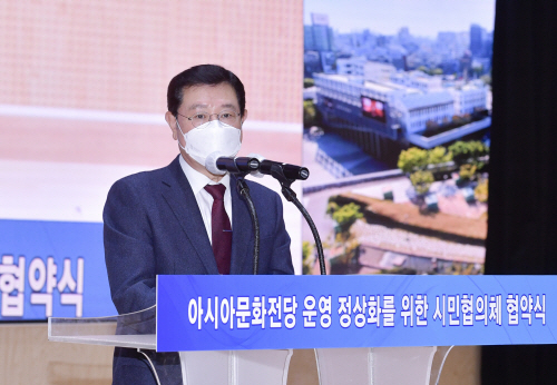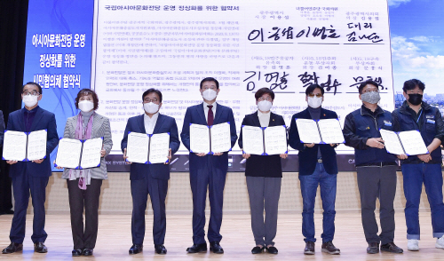 광주시와 지역 국회의원, 시민사회단체 등 9개 단체로 구성된 시민협의체는 16일 전일빌딩245 다목적강당에서 국립아시아문화전당 운영 정상화를 위한 공동 노력에 합의하고 협약을 체결했다.