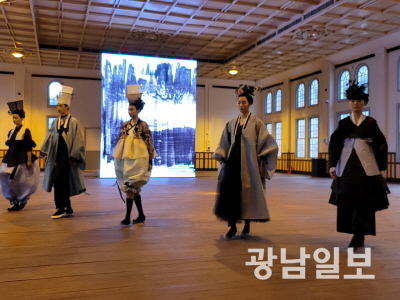 ‘수묵패션쇼’는 tvN 드라마 ‘미스터썬샤인’ 등 다수의 영화·드라마에서 의상 연출자로 참여한 세계적 한복 디자이너 김영진이 연출을 맡았다. 수묵의 아름다움을 담은 한복의상을 입은 모델의 다이내믹한 워킹과 수묵비엔날레 주전시관 작품을 콜라보해 수묵이 나아갈 방향을 제시했다는 평을 받고 있다.