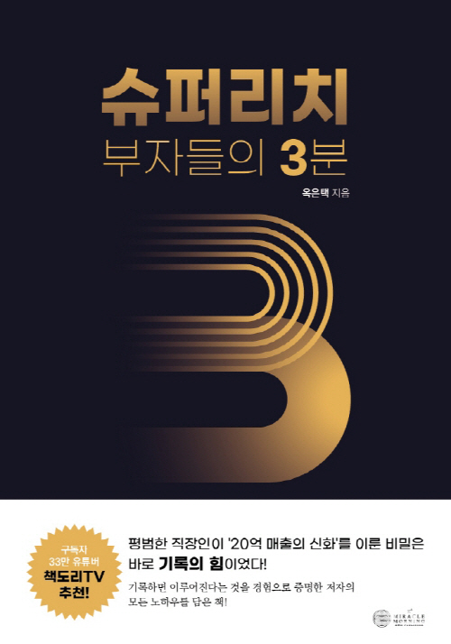 ▲슈퍼리치 부자들의 3분(옥은택 지음·케이미라클모닝 刊·1만5000원)=평범한 회사원이자 연봉 2000만원으로 근근히 살아오던 중 저자는 종이와 펜으로 부자가 될 수 있다는 책을 접한다. 그리고 나서 만 29세에 연매출 20억의 중견 기업으로 성장하는 CEO가 됐다. 어떻게 그런 일이 가능할 수 있었을까? 종이와 펜은 주변에 널려있다. 그런데 왜 사람들은 안 쓰는 것일까? 이 책은 당신을 움직이게 만들 것이다. 손에 쥐고 있는 스마트폰을 내려놓게 만들고 당신의 손에 펜을 쥐여 줄 것이다. 당신의 삶 위에 기록이 더해지면 새로운 삶이 펼쳐진다는 것을 보여준다.