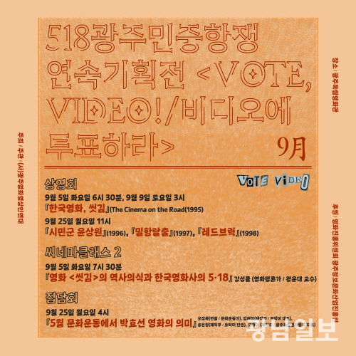 기획전 제목 ‘VOTE, VIDEO 비디오에 투표하라!’에서 ‘VOTE’(투표)는 1980년 광주항쟁이 있었기에 가능했던 1987년 민주주의체제를, ‘VIDEO’(비디오)는 1980년대 광주비디오 상영운동이라는 영화 뿐만 아니라 한국문화운동사에 대전환을 가져온 예술을 가리킨다.