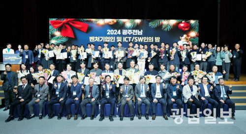 | 광주전남벤처기업협회는 최근 김대중컨벤션센터에서 광주 및 전남정보문화산업진흥원, 에너지밸리기업개발원 등과 함께 ‘2024 광주전남벤처기업인 및 ICT/SW 기업인의 밤’ 행사를 개최했다. |
