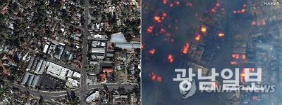 미국 민간위성촬영 기업 맥사(Maxar)가 공개한 LA 화재 현장의 위성사진을 보면 서부 해안의 부촌인 퍼시픽 팰리세이즈 주택가는 산불로 완전히 초토화됐다.