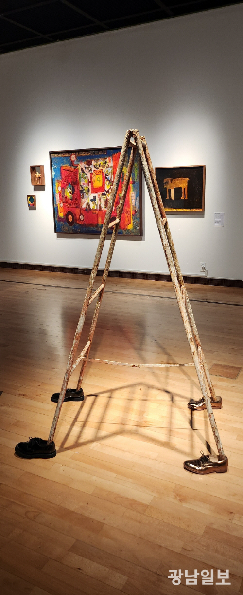 | 문형태 작가의 두 사람이 서로 의지하며 지탱하는 등 관계를 생각하게 하는 작품 ‘사다리’. |
