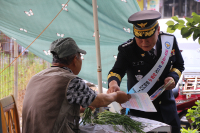 | 광주 동부경찰서는 7일 산수시장과 푸른길 공원에서 교통, 생활, 서민경제 3대 법질서 확립을 위한 캠페인을 진행했다. |