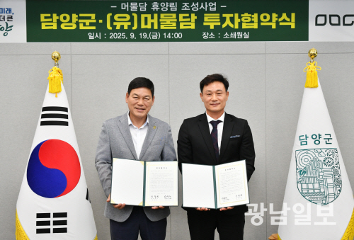 23일 담양군에 따르면 최근 머물담과 금성 ‘머물담 휴양림 조성사업’을 추진하기 위한 투자협약을 체결했다.