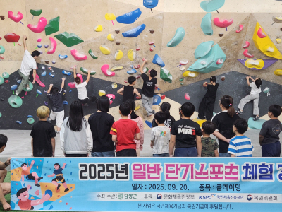 행사에는 단기 체험강좌 참가자와 인솔자, 관리자 등 25명이 함께했으며, 참가자들은 스트레칭과 안전교육을 받은 뒤 스포츠클라이밍을 직접 체험하며 색다른 경험을 즐겼다.