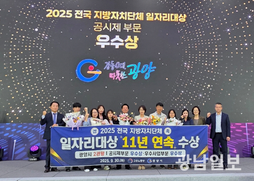 광양시는 청주 오스코에서 열린 ‘2025년 전국 지방자치단체 일자리 대상’ 시상식에서 공시제 부문과 우수사업 부문에서 나란히 우수상을 수상하며, 11년 연속 일자리 대상을 수상했다. |
