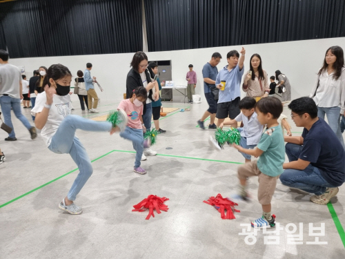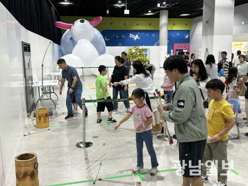 국립광주과학관을 방문한 가족 단위 관람객들이 제기차기를 하는 모습. |