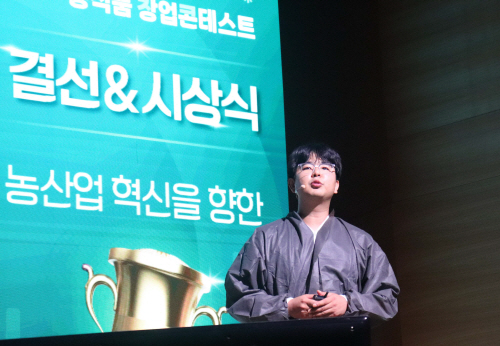 염건웅 대표가 ‘농식품 창업콘테스트’에서 발표를 하고 있다 |