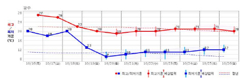 평년보다 높았던 기온은 비가 내린 후 급격히 낮아지겠다.