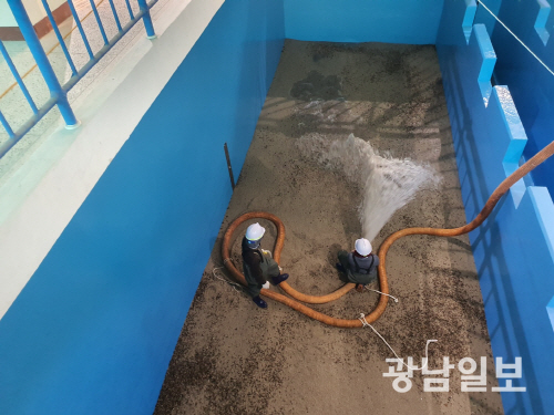 굴상은 기존에 사용됐던 여재들을 배출하는 작업이다. 여과재를 굴상할 때 입도 손상을 최소화하고, 세척 과정에서는 라디컬 세정수를 순환시켜 세척수를 재사용한다.