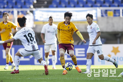전반 10분에는 광주 진영 인근에서 치열한 볼 경합이 벌어졌고, 상대 남태희가 날린 슈팅을 김경민이 쳐냈다.
