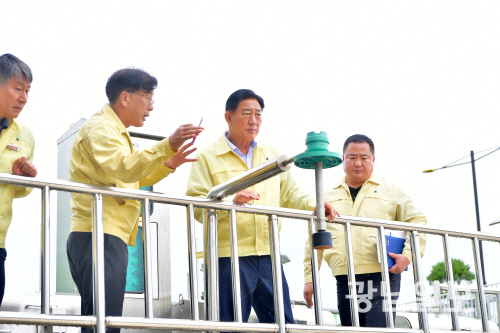 | 지난 6월 장성배수펌프장 현장 점검에 나선 김한종 장성군수 |