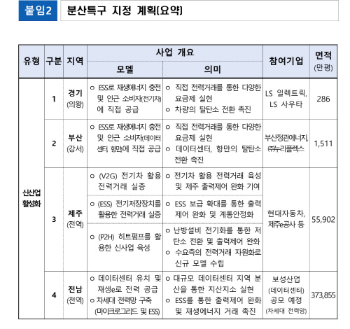 신산업 활성화 유형은 ‘분산에너지와 정보통신기술(ICT)을 활용·연계하고 특구에 부여되는 특례를 이용해 신산업을 발굴하는 게 주요 골자다.
