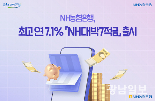 출시 기념 이벤트도 진행된다. 오는 12일부터 다음달 12일까지 ‘NH대박7적금’ 가입 고객을 대상으로 ‘행운의 777 이벤트’를 운영, 추첨을 통해 총 777명에게 네이버페이 포인트와 배달의민족 금액권 등을 제공한다.