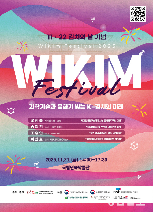 올해 위킴 페스티벌의 주제는 ‘과학기술과 문화가 빚는 K-김치의 미래’다. 김치의 세계화를 이끄는 과학적 근거와 문화적 가치를 한자리에서 조명하기 위해 과학자, 빅데이터 전문가, 인문학자, 과학 커뮤니케이터 등 다양한 분야의 전문가들이 참여해 김치의 매력과 가능성을 쉽고 흥미롭게 소개한다.
