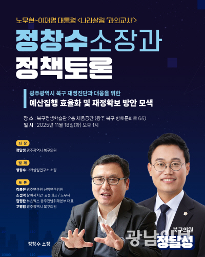 토론회를 주관하는 정달성 의원은 “광주 자치구 중 재정자립도가 가장 낮은 북구의 현실을 직시하고, 2026년도 본예산에 구민의 삶을 개선할 정책이 제대로 반영되도록 미리 점검하는 자리가 필요했다”며 “토론회에서 나오는 전문가들의 제언을 바탕으로 북구 재정의 효율성과 합리성을 높이고, 지속가능한 재정 운용 구조를 확립하는 데 최선을 다하겠다”고 밝혔다.