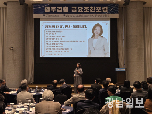 김경희 희망교육개발원장은 지난 14일 홀리데이인 광주호텔에서 열린 광주경영자총협회 제1703회 금요조찬포럼에서 ‘사장으로 산다는 것·리더로 산다는 것-저도 조금은 성공했습니다’를 주제로 강연을 진행했다.