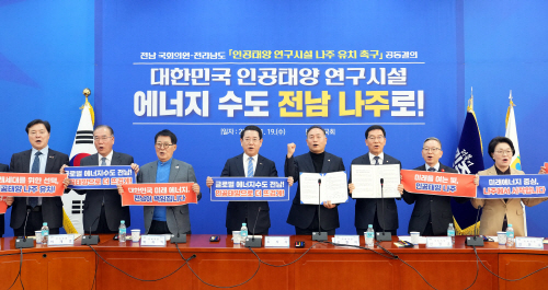 전남도와 광주·전남 정치권이 19일 국회에서 인공태양 연구시설의 전남 나주 유치를 촉구하며 공동결의문을 발표, 지역 역량을 총결집하겠다는 의지를 천명했다.