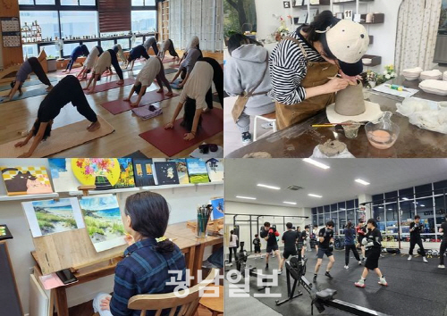| 나주애(愛)배움바우처 활동사진. (왼쪽부터 시계방향으로 요가, 도예, 미술, 복싱 교실) |