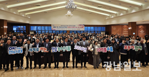| 전남도는 28일 남악 스카이웨딩컨벤션에서 농수산 수출기업, 수출 유관기관 등 200여명이 참석한 가운데 ‘2025 농수산식품 수출기업 전진대회’를 열어 2026년 수출 10억 달러 달성 결의를 다졌다. |