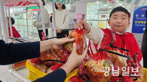광주시는 지난 28일 시청 1층 시민홀에서 시청 어린이집 어린이들이 ‘사랑장(사랑을 나누는 장터)’을 열었다고 밝혔다. 아이들은 “사랑을 나눠주세요”라고 활기차게 외치며 직접 준비한 토마토김치, 수제청, 고구마, 대파 등을 판매했다.