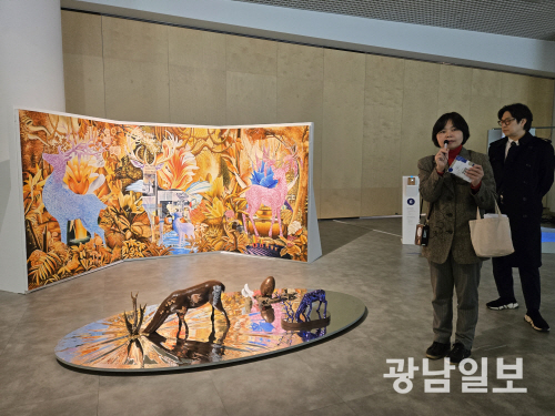 | 유영아 학예연구사가 루카스 실라버스 작 ‘기억의 숲’에 대해 설명하고 있다. |