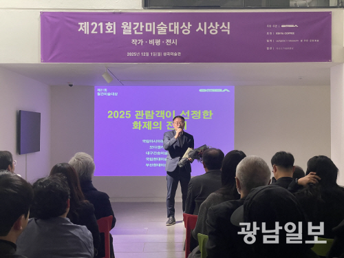 ‘월간미술대상’은 국내 대표 미술전문지 ‘월간미술’이 매년 선정하는 권위있는 상으로, 한국미술의 담론 형성과 전시기획 성과를 격려하기 위해 지난 1996년 제정됐다. 전문가로 구성된 추천·심의위원단이 최근 1년간 국공립·사립·소규모 기관에서 열린 전시 가운데 10건을 우수전시로 선정하며, 올해 시상식은 지난 1일 서울 성곡미술관에서 작가를 비롯해 비평·전시·대중 선정 부문 수상자들이 참석한 가운데 열렸다.