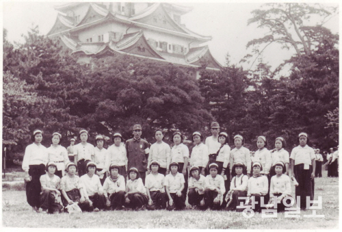 | 1944년 5월말 나주대정국민학교(현 나주초등학교) 6학년 재학생과 졸업생 등 24명이 미쓰비시중공업 나고야 항공기 제작소에 동원됐다. 1944년 6월경 일본에 도착해 본격적인 노동에 투입되기 전 나고야성 앞에서 쵤영한 기념사진. |