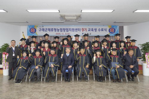 김순호 구례군수는 “지난 10개월의 교육이 수료생들의 새로운 삶을 준비하는 든든한 토대가 됐길 바란다”며 “앞으로도 개개인의 소중한 꿈들이 구례에서 아름답게 결실을 맺을 수 있도록 적극 지원하겠다”고 말했다.