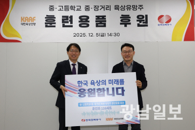 | 한전은 최근 올림픽회관에서 대한육상연맹과 함께 전국 중·고등학교 육상 유망주들을 위한 훈련용품을 후원했다. |
