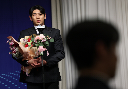 | 8일 서울 강남구 리베라호텔에서 열린 ‘2025 뉴트리디데이 일구상 시상식’에서 특별 공로상을 수상한 이정후가 수상 소감을 말하고 있다. 연합뉴스 |