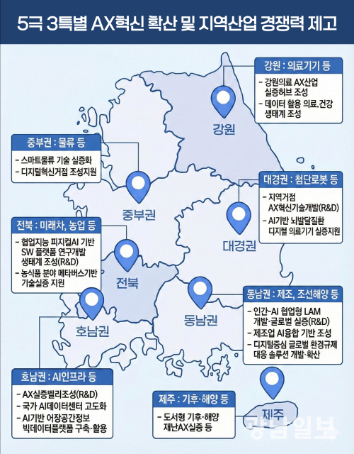 정부는 5극3특 지역 균형발전 전략에 따라 호남권·대경권·동남권·전북 4개 권역에 총 3조1000억원 규모의 AI혁신거점 조성을 확정한 상태다. 내년에는 적정성 검토를 거쳐 거점 구축을 본격화할 계획이다.