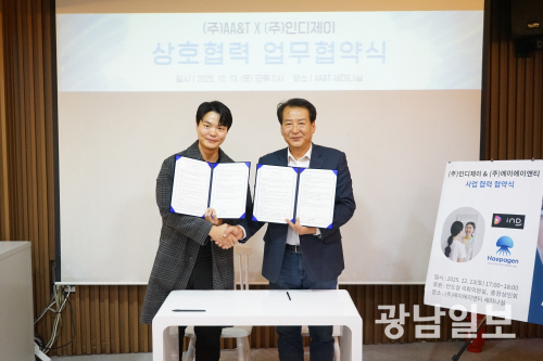 ㈜에이에이앤티(AA&T)와 ㈜인디제이(inDJ)는 지난 13일 광주 동구 에이에이앤티 본사 세미나실에서 전략적 파트너십 구축을 위한 업무협약을 체결했다고 15일 밝혔다.