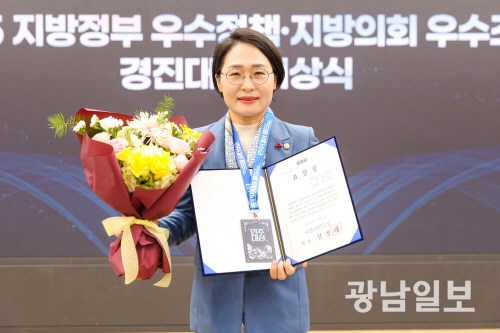 | 민덕희 여수시의회 의원은 최근 ‘더불어민주당 지방정부 우수정책·지방의회 우수조례 경진대회’에서 최우수상을 수상했다. |
