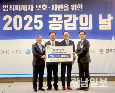 임양진 광주은행 경영지원본부장은 “범죄 피해로 일상 회복에 어려움을 겪는 분들게 조금이나마 위로와 도움이 되길 바란다”며 “앞으로도 지역사회의 아픔에 공감하고 금융의 역할을 넘어 이웃의 회복과 일상 복귀를 돕는 다양한 사회공헌 활동을 지속해 나가겠다”고 말했다.