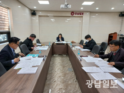 | 광남일보 사옥 1층 MVG라운지에서 심시위원들이 2025 제14회 중소기업경영인대상 심사를 하고 있다. 최기남 기자 bluesky@gwangnam.co.kr |