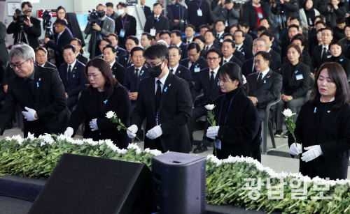 1층에 마련된 제주항공 여객기 사고 희생자 합동분양소에는 침통한 분위기 속에서 희생자 179명을 추모하는 발길이 이어졌다. 지난해 12월29일 사고로 세상을 떠난 희생자들의 위패 앞에는 국화꽃과 손편지가 가득 놓였고, 추모객들은 낮은 숨소리로 묵념하며 고인의 명복을 빌었다.