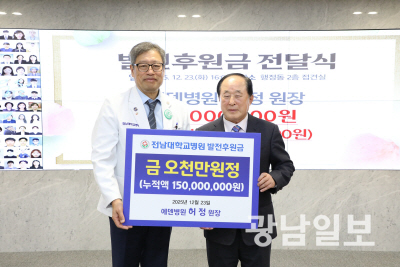 이번 기부로 허 원장이 전남대병원에 기탁한 총 누적 후원금은 1억5000만원에 이르게 됐다. 전달된 후원금은 전남대병원의 의료 공공성 강화와 미래 의료 인재 양성을 위한 교육 및 연구 지원에 사용될 예정이다.