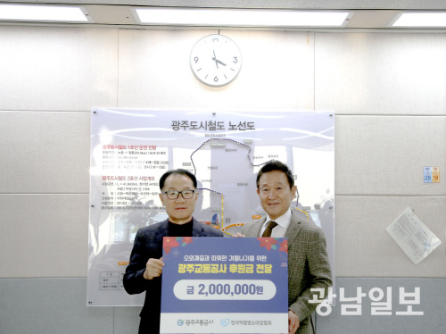 | 광주교통공사는 최근 광주시 서구 마륵동 본사에서 (사)한국백혈병소아암협회 광주전남지회에 임직원들이 정성껏 모은 성금 200만원을 전달하고, 환아들의 따뜻한 연말연시를 기원했다. |