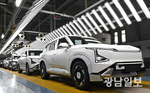 | 기아 오토랜드 광주가 3년 연속 50만대 생산을 돌파했다. 사진은 기아 오토랜드 광주 1공장 EV5 생산 라인. |