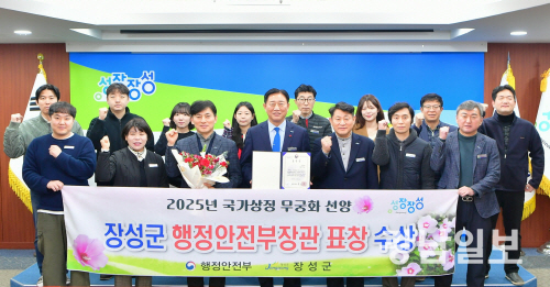 | 장성군은 최근 정부대전청사에서 열린 산림청 국가 상징 선양 정부포상 전수식에서 행정안전부 장관 기관 표창을 받았다. |