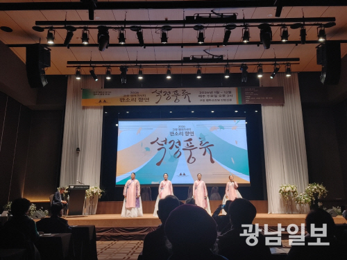 | 판소리 상설무대인 고창 웰파크시티 판소리향연 ‘석정풍류’가 지난 7일 첫 무대를 가진 가운데 사단법인 동리문화사업회의 비조채선팀 명창들이 판소리를 선사하고 있다. |
