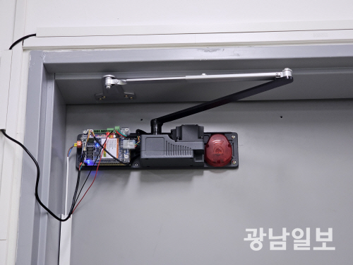 | AI 기반 여닫이문 출입 자동화 시스템 내부 모습. |