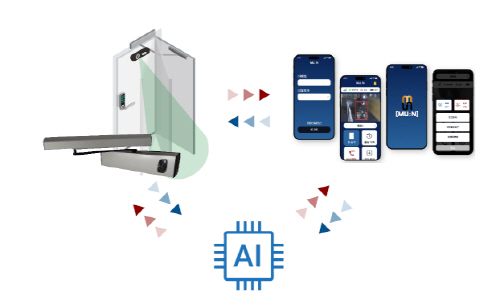 뮤네릭스가 개발한 핵심 솔루션은 AI 기반 여닫이문 출입 자동화 시스템 ‘MUːN’이다. 단순히 문을 자동으로 여닫는 장치가 아니라, 출입 인식부터 도어락 제어, 문 개폐, 출입 로그까지 하나의 흐름으로 묶어 출입 환경 전체를 다시 설계하는 구조다.