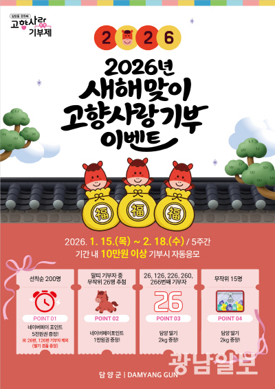 군 관계자는 “새해를 맞아 고향사랑기부제를 널리 알리고 기부 문화를 확산시키기 위해 이번 이벤트를 마련했다”며 “앞으로도 고향사랑기부제 활성화를 위해 지속적으로 노력하겠다”고 말했다.
